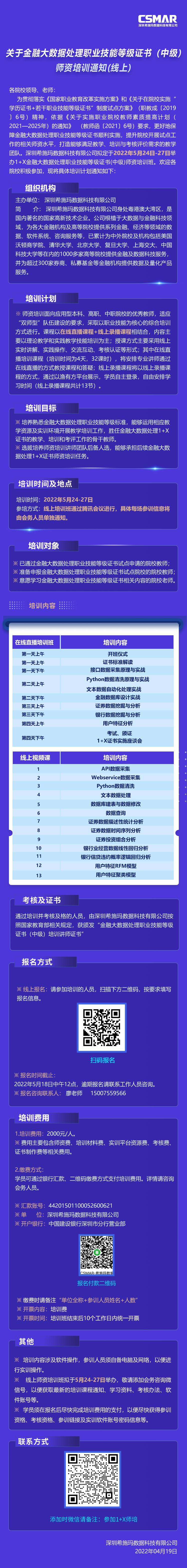 师资培训 | 关于金融大数据处理职业技能等级证书(中级)师资培训通知(线上)